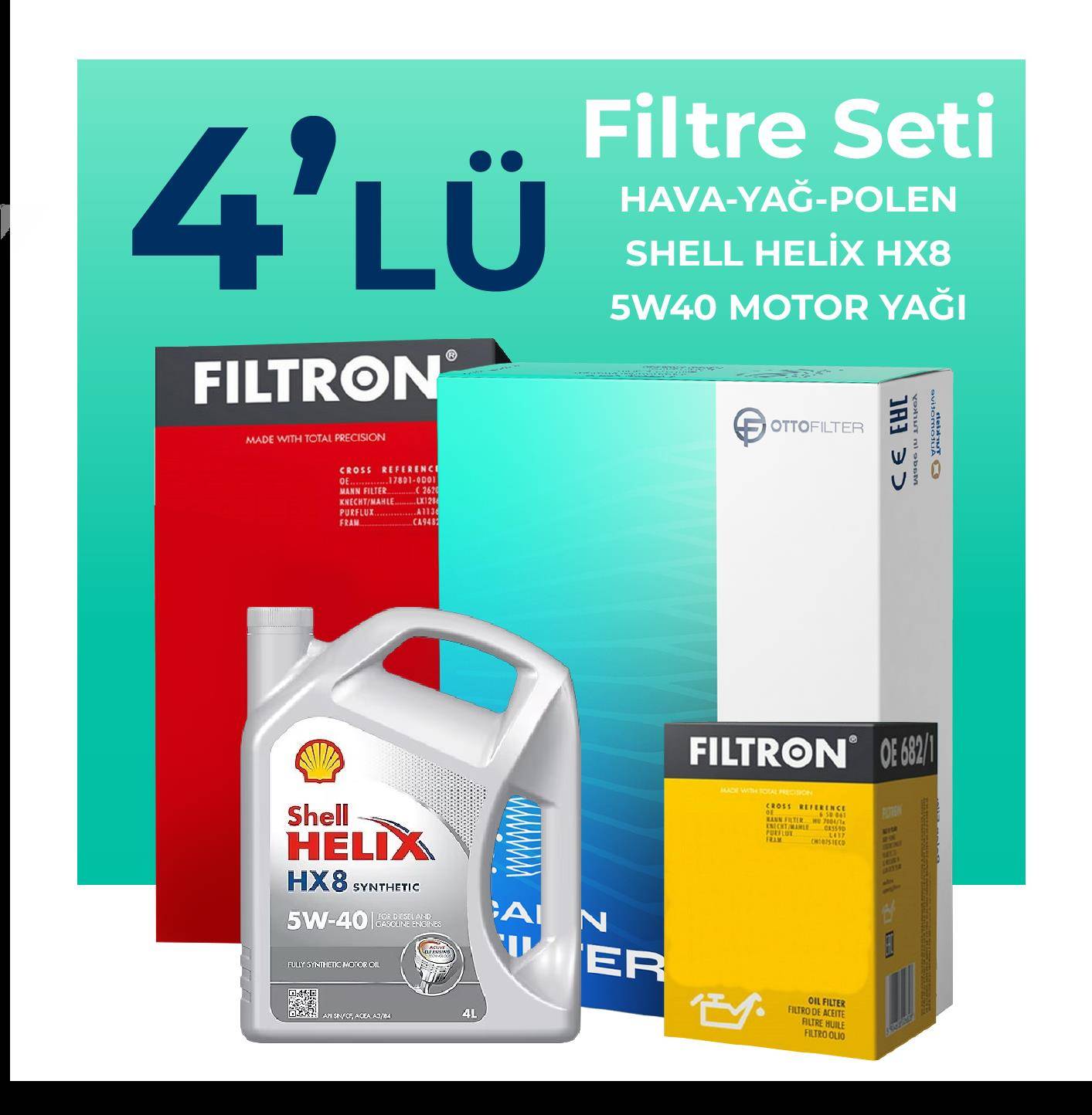 Filtron Fiat Idea 1.4 Benzinli Filtre Bakım Seti Shell Motor Yağlı (2004-2010) 4 Lü