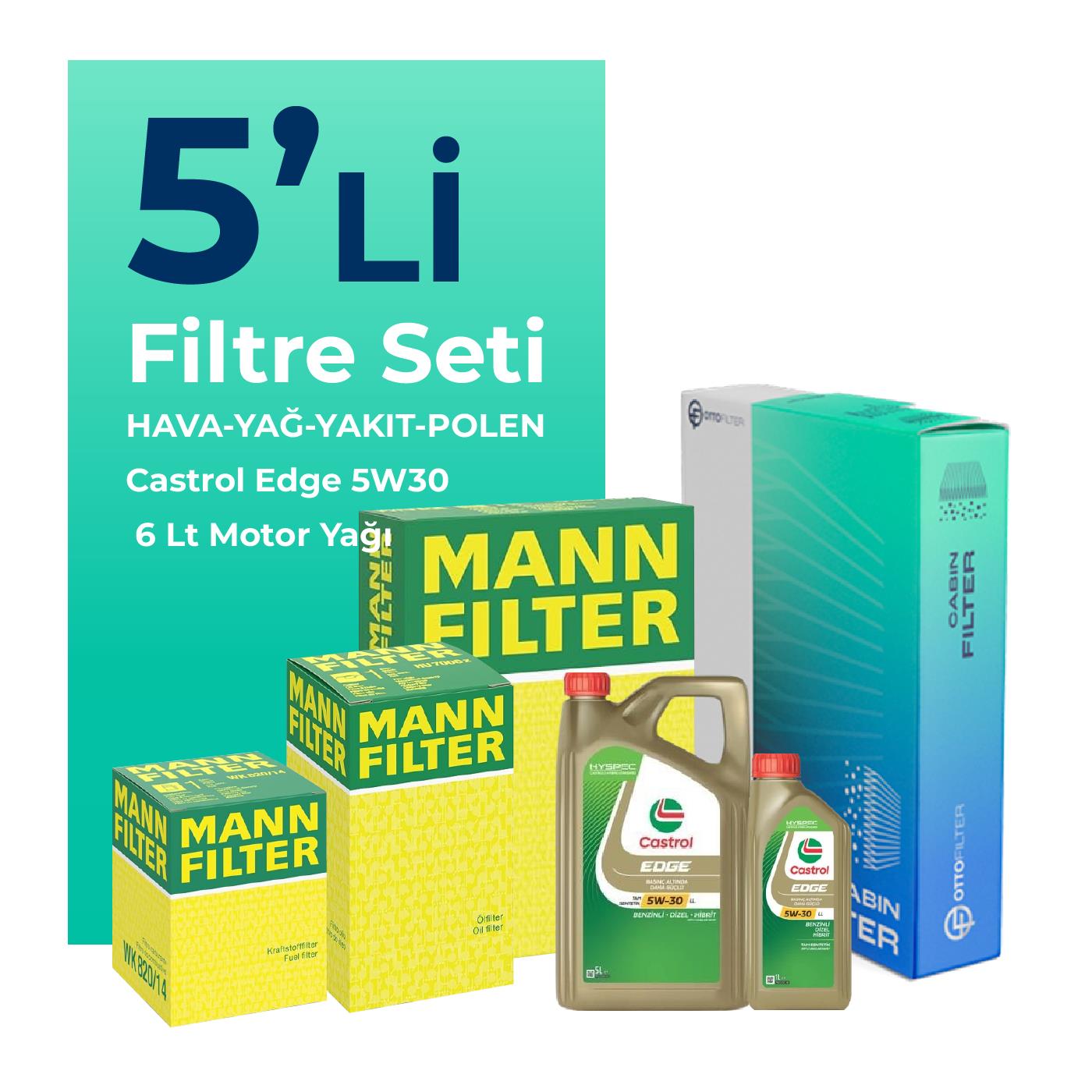 MANN Mercedes B180 Dizel Filtre Bakım Seti Castrol Motor Yağlı (2018-2022) 5 Li