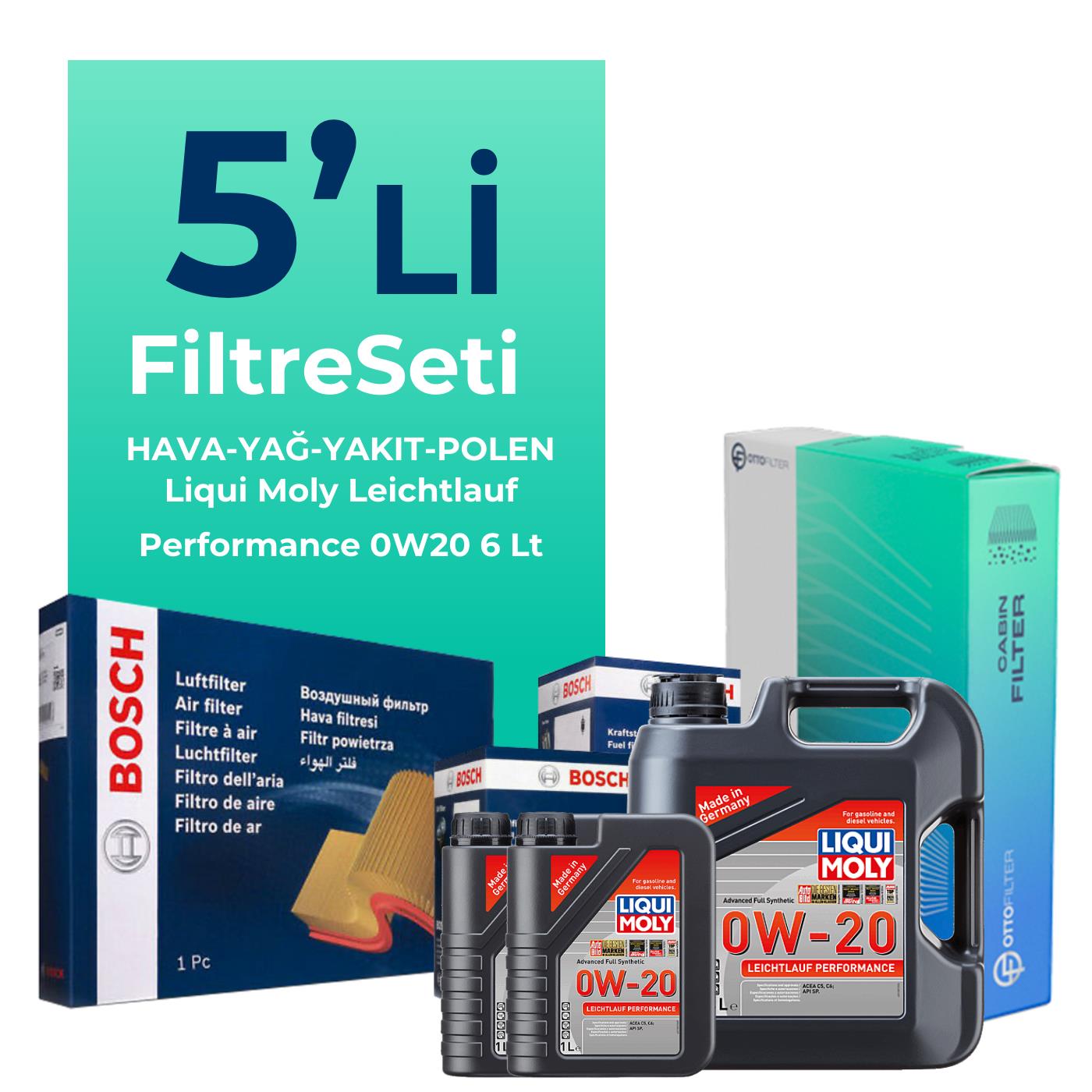 Anasayfa - Mağaza - Bosch Volkswagen Caddy 2.0 Dizel Filtre Bakım Seti Liqui Moly Motor Yağlı (2020-2025) 5 Li